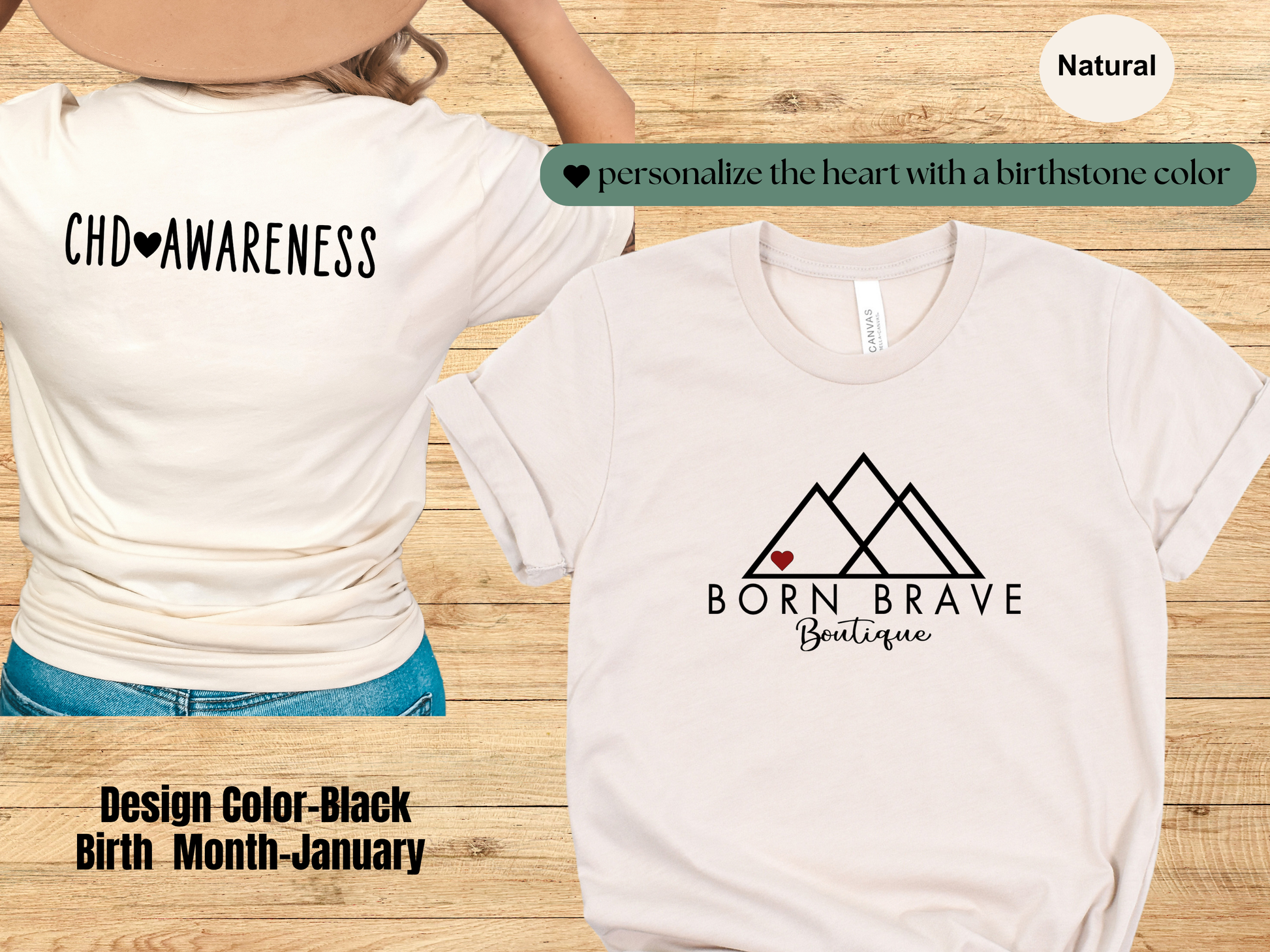 Born Brave Boutique Logo Tee – Personalized Heart Color